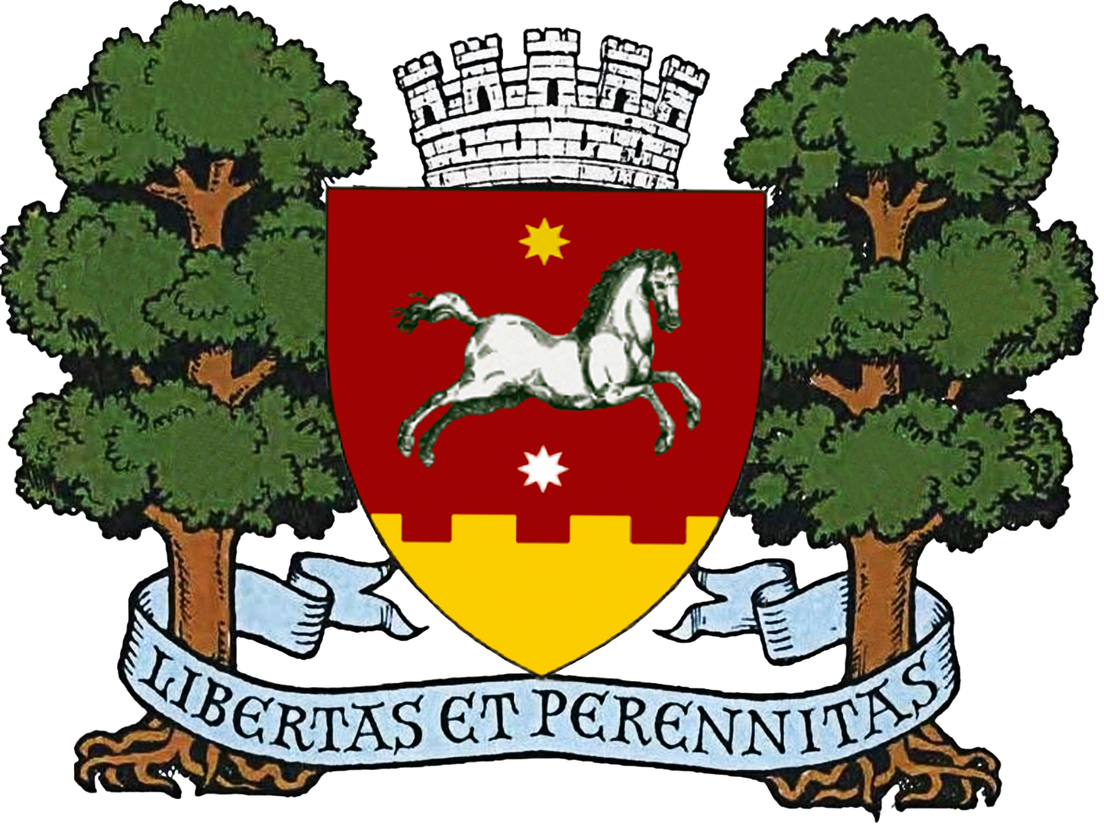 Сопровождающие звезды взяты с одной из средневековых печатей и символизирует непрерывность городского поселения.